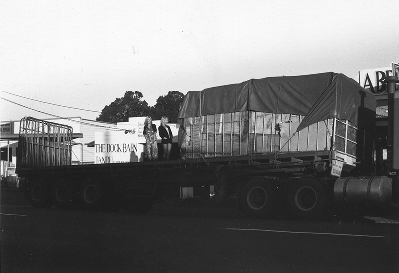 Rebecca and Trisha unloading the 20 tonne truck with books